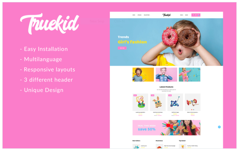 Gts Truekid a best Shopify Theme perfectly fits for stores selling children toy, children fashion and Accessories.